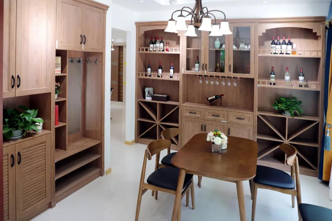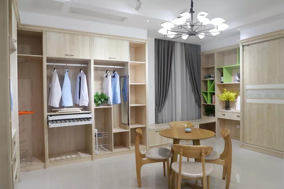 300多平米的店面內(nèi),不僅有板材、整體衣柜、五金、柜門等產(chǎn)品,還采用樣板間的方式,呈現(xiàn)出不同的裝修風(fēng)格,將產(chǎn)品展示與店面設(shè)計(jì)結(jié)合,為消費(fèi)者帶來(lái)最為直觀的產(chǎn)品效果展示,令人眼前一亮。