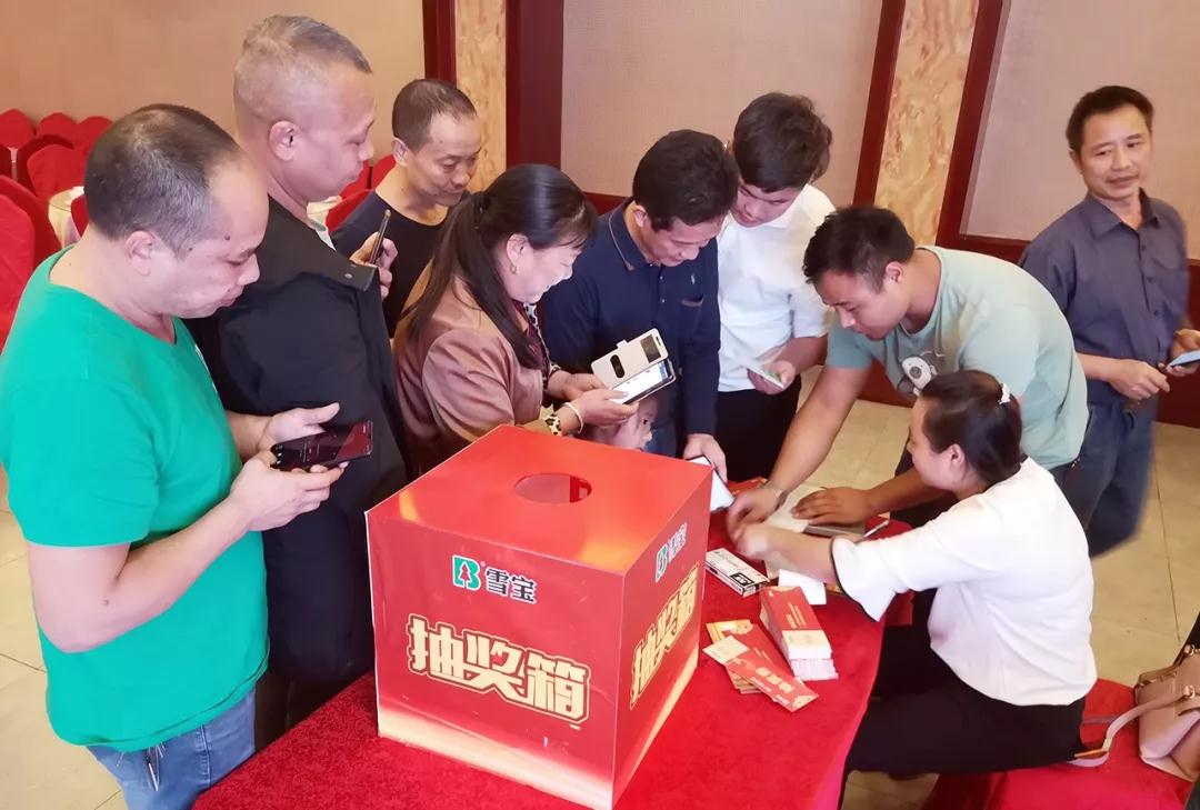 抽獎(jiǎng)環(huán)節(jié),所有訂貨客戶均獲得不同的實(shí)物獎(jiǎng)勵(lì),雪寶品牌懷化地區(qū)周總活動(dòng)現(xiàn)場(chǎng)更是拿出現(xiàn)金大獎(jiǎng)進(jìn)行加持,將答謝盛會(huì)推向高潮。