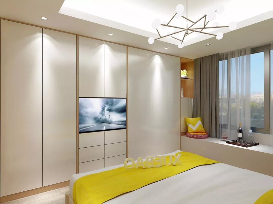 主臥柜體滿墻到頂設(shè)計,空間利用追求極致。休息區(qū)、儲物區(qū)、梳妝區(qū)、休閑區(qū)、視聽區(qū)五大功能分區(qū),在空間展現(xiàn)淋漓盡致,完美滿足生活需求。書桌臺巧妙設(shè)計梳妝收納格,功能不要太強大哦。同時,選用明亮色系檸檬搭配,讓空間頓生活潑俏皮氣息。