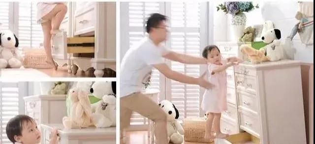 兒童房書(shū)柜衣柜等必須與墻固定,防止頑皮孩子蹬著書(shū)柜爬高時(shí),柜子翻扣下來(lái);