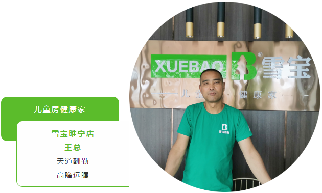 雪寶睢寧優(yōu)裝旗艦店王總加入雪寶已有多個(gè)年頭,可以說是雪寶經(jīng)銷商體系中的元老級(jí)人物了。一路走來,見證了品牌不斷發(fā)展壯大,同時(shí),自身也因雪寶收獲成功和喜悅。正是印證了一句話,成大事者,貴在堅(jiān)持!