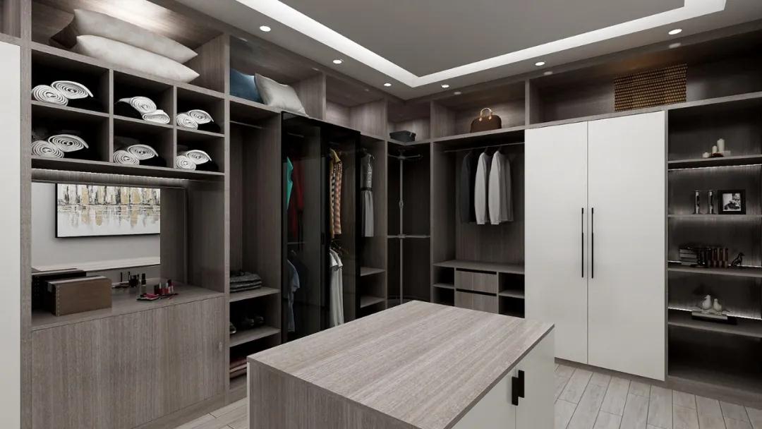 空間布局:一般來說,衣帽間的常規(guī)尺寸是在4㎡以上,獨立式衣帽間對住宅面積的要求更高。因為人需要有轉身換衣的空間,如果面積太小的話,會讓您產(chǎn)生一種壓抑的感覺。