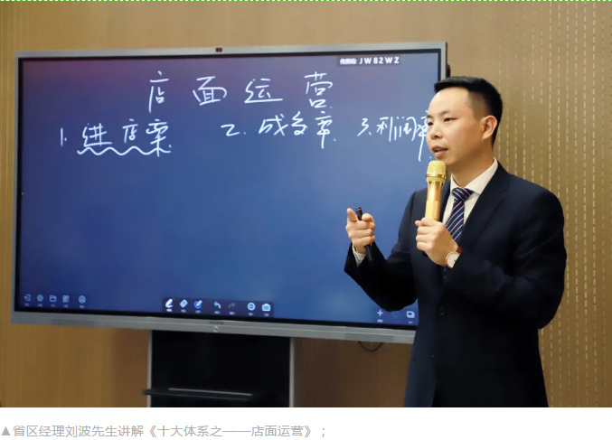 省區(qū)經(jīng)理劉波先生對此次導(dǎo)購特訓(xùn)營進(jìn)行了開營致辭,強(qiáng)調(diào)了此次培訓(xùn)的意義,敦促全體學(xué)員們要時刻保持學(xué)習(xí)的熱忱,謹(jǐn)記提升自我的重要性。