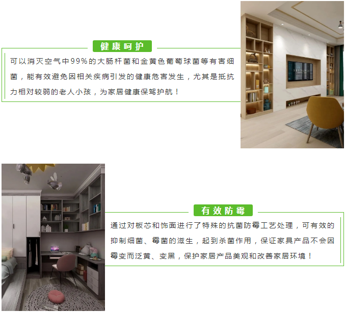 雪寶抗菌防霉板以雪寶優(yōu)質(zhì)板芯為基材,在工藝上下足功夫,防霉抗菌、凈化新升級(jí),產(chǎn)品優(yōu)勢(shì)顯著,造就一片綠色環(huán)保生態(tài)安全的健康天地,為家居空間實(shí)現(xiàn)健康多重防護(hù)!