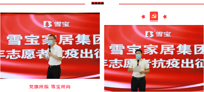 在雪寶抗疫公益愛心活動(dòng)再出征儀式上,雪寶家居集團(tuán)董事長李振先生與集團(tuán)副總經(jīng)理李杰先生致詞,肯定了雪寶人的勇作為敢擔(dān)當(dāng)?shù)木,表示在一線的切身體驗(yàn)讓我們每個(gè)人對抗疫有更為清晰的認(rèn)識(shí),也深刻領(lǐng)會(huì)到歲月靜好不過是有著許許多多奮不顧身的人在負(fù)重前行,在執(zhí)著堅(jiān)守,在堅(jiān)強(qiáng)守護(hù)!