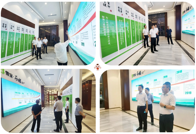 在參觀至6樓雪寶黨群服務中心,處處可見的黨建標語標識讓農(nóng)行一行領導無不稱贊,并駐足聽取李振董事長就企業(yè)為什么要做黨建以及堅定不移踐行黨建的根本原因等。