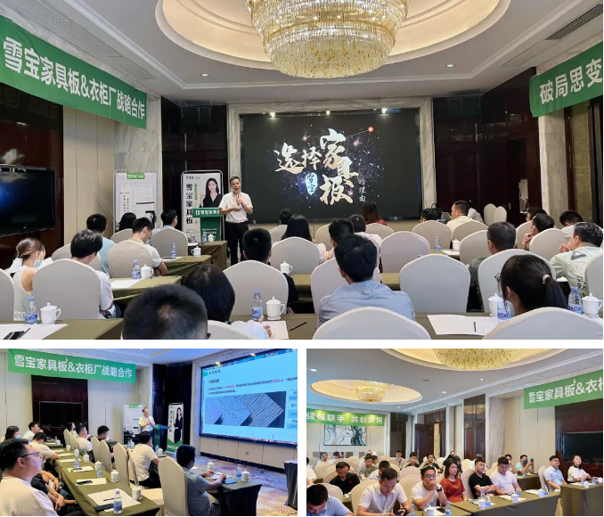 好的產(chǎn)品是成功的一半,而好的產(chǎn)品必須是解決客戶最實際的需求以及對產(chǎn)品的五星好評。雪寶家具板事業(yè)部大區(qū)經(jīng)理劉波先生現(xiàn)場介紹雪寶家具板以及選擇雪寶家具板的理由,從產(chǎn)品研發(fā)、生產(chǎn)工藝、環(huán)保標(biāo)準(zhǔn)、花色體系、營銷設(shè)計、產(chǎn)品質(zhì)檢,以及品牌強(qiáng)大售后服務(wù)等多維度展開系統(tǒng)、專業(yè)的介紹,幫助各位合作伙伴清晰了解雪寶家具板的核心差異化優(yōu)勢。