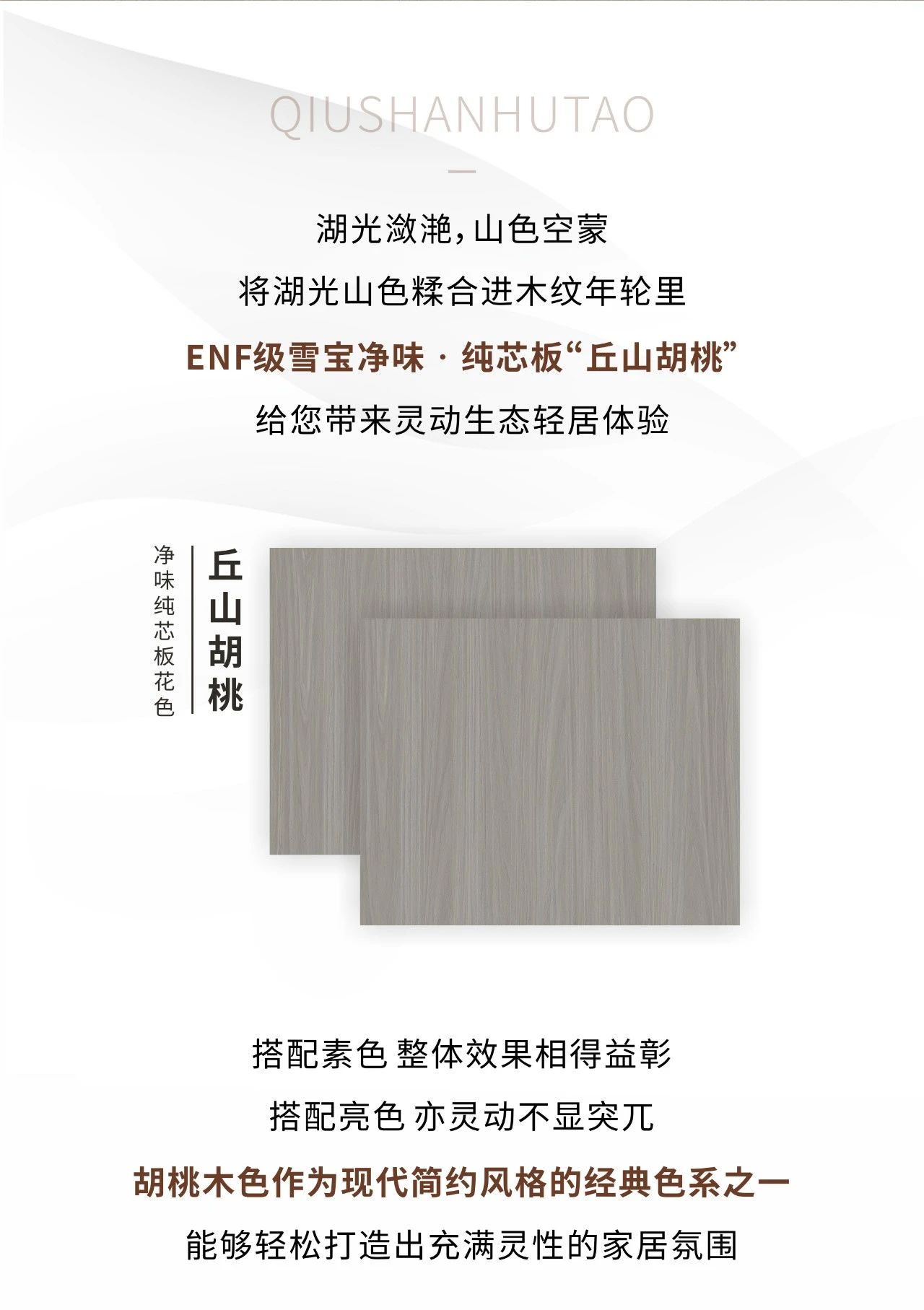 ENF級雪寶凈味·純芯板:丘山胡桃,帶給您靈動生態(tài)輕居體驗(yàn)