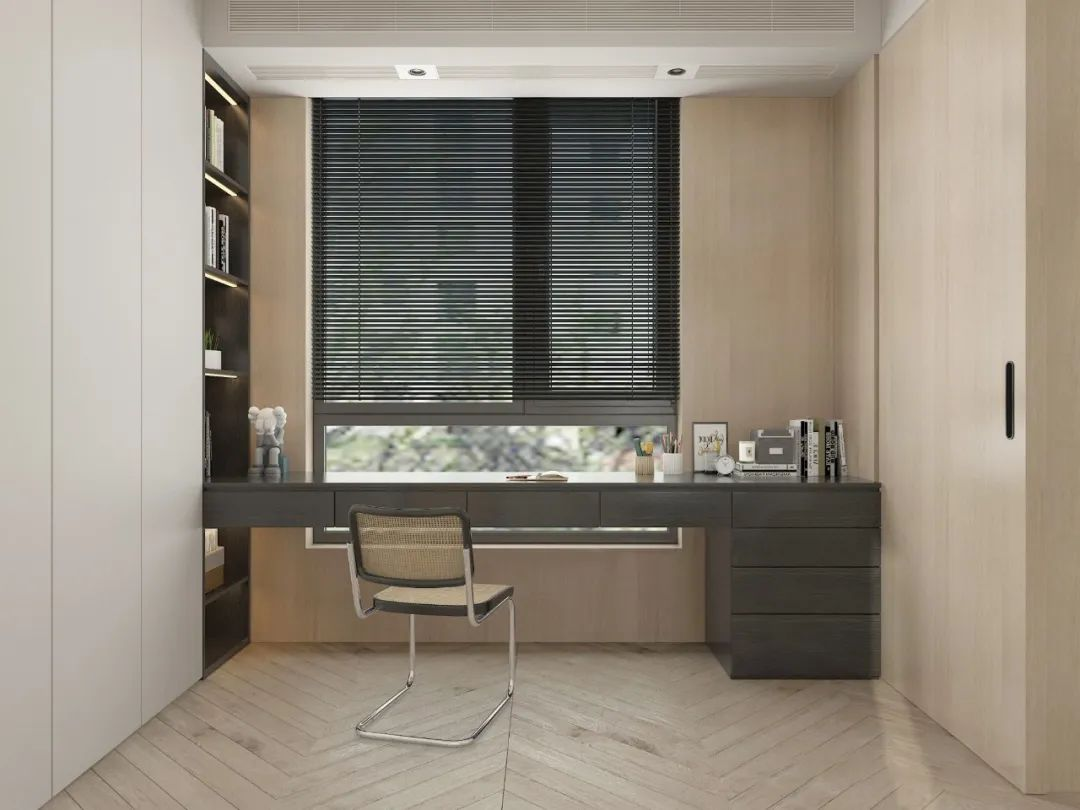 但如果空間較狹窄,則可以充分利用飄窗四周空間,設(shè)計(jì)出一款書柜與書桌相結(jié)合的一體式柜子,這下就再也不用羨慕別人家有書房了!