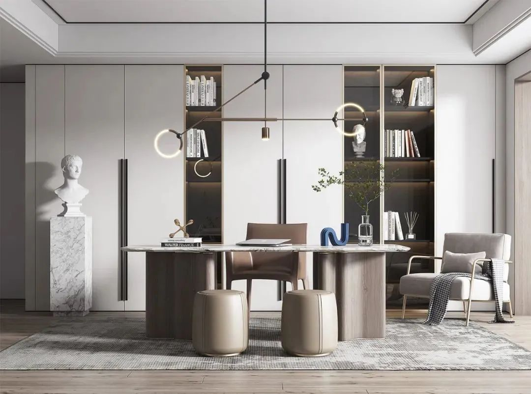 一個安靜的環(huán)境能形成良好的學(xué)習(xí)氛圍,所以書房必須使用隔音材料或者隔音效果好的門窗,也可以使用地毯等軟裝起到隔音的效果,這樣就能心無旁騖地徜徉在知識的海洋里啦。