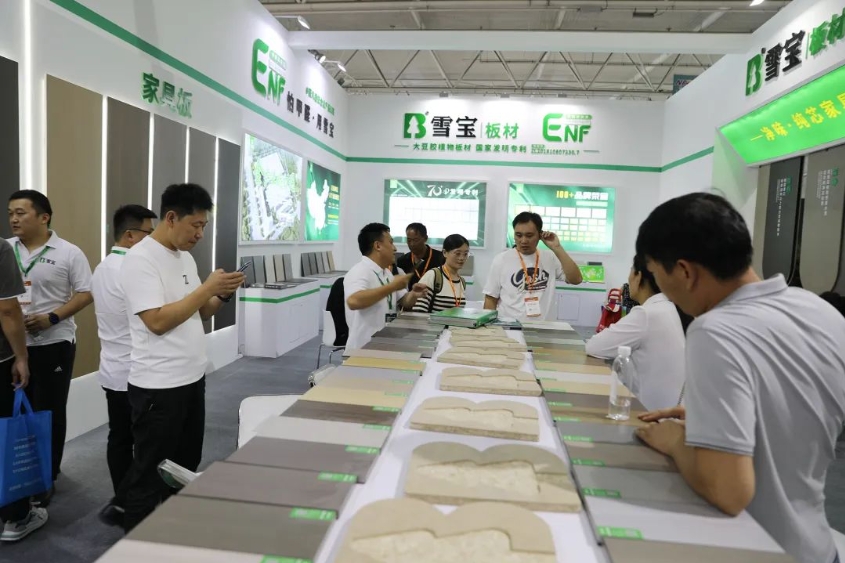 數(shù)年前,雪寶板材就已通過研發(fā)出遠(yuǎn)超國(guó)標(biāo)環(huán)保標(biāo)準(zhǔn)數(shù)10年的E0級(jí),目前全系產(chǎn)品又率先實(shí)現(xiàn)升級(jí)ENF級(jí),環(huán)保品質(zhì)一直走在行業(yè)前列。同時(shí),通過掌握核心環(huán)保技術(shù)力量零醛添加的“大豆膠”國(guó)家發(fā)明專利,讓雪寶板材的產(chǎn)品環(huán)保力遠(yuǎn)優(yōu)于市面上多數(shù)板材產(chǎn)品!▲集團(tuán)董事長(zhǎng)攜部分高管走進(jìn)展會(huì)現(xiàn)場(chǎng)并與合作伙伴進(jìn)行溝通
