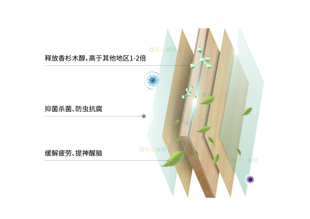 抗菌防霉!凈醛負離子!抗蟲蛀!散發(fā)天然原木清香的功能型雪寶板