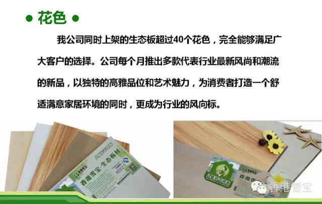 截止2014年底,雪寶板材已推出“孔雀開(kāi)屏 ”、“千絲萬(wàn)縷”、“經(jīng)典檀木”等生態(tài)板系列,裝飾面板系列,五金系列,涂料系列,膠粘劑系列等產(chǎn)品。產(chǎn)品的多樣性以及超環(huán)保的性能在業(yè)內(nèi)擁有良好的口碑。“兒童房健康板”的產(chǎn)品理念已深入人心,環(huán)保等級(jí)達(dá)到行業(yè)最高的E0級(jí),雪寶板材所代表的就是環(huán)保、生態(tài)、健康。