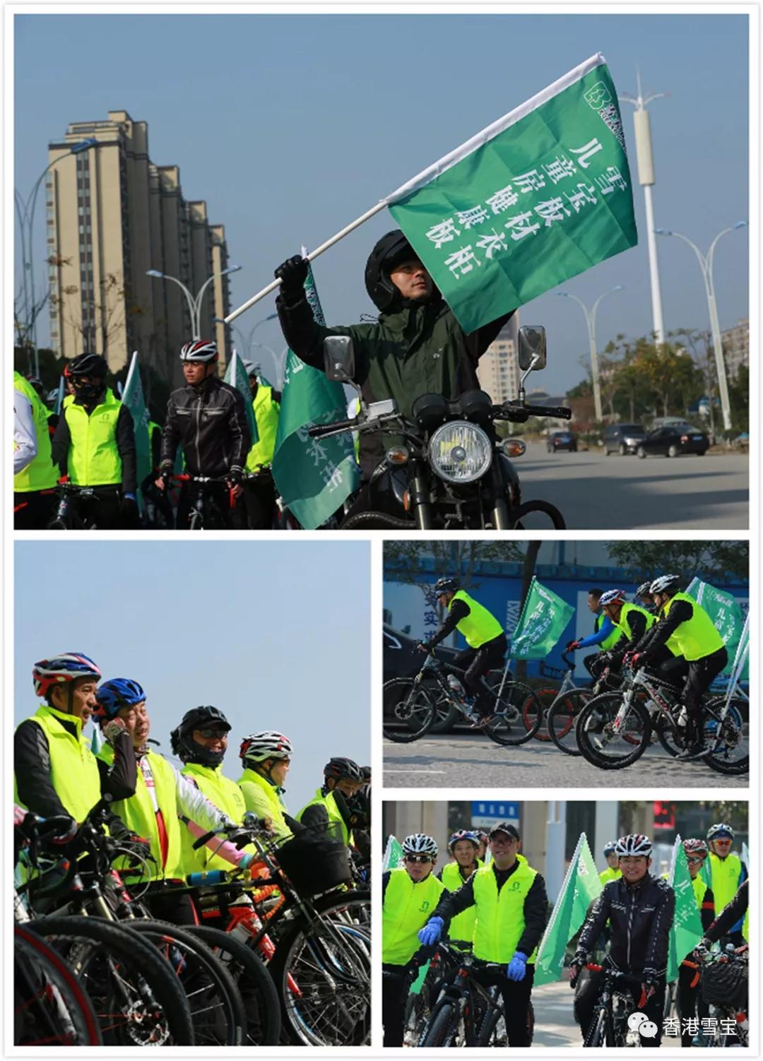 一輛自行車,一桿旗幟,身著一件雪寶綠色馬甲,一群健康向上的騎友相約一行穿梭在樂清大街小巷,為香港雪寶樂清專賣店搖旗助威,為雪寶品牌踐行健康環(huán)保的使命加油鼓勁!